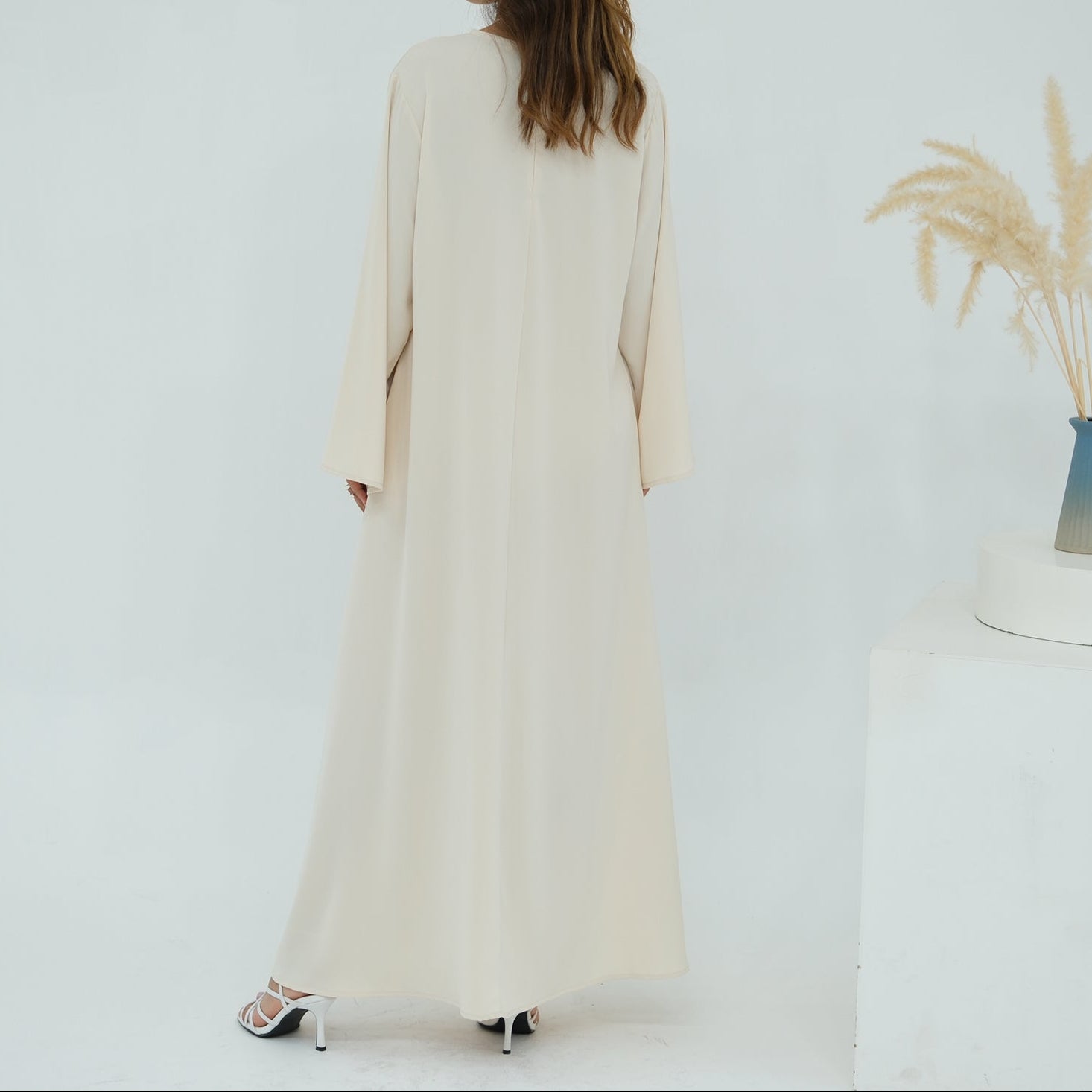 Full sleeves Nida Inner Abaya Dress (فستان عباءة داخلي نيدا بأكمام طويلة) is a lightweight and breathable inner nida dress designed as the perfect layering piece under open abayas. With its flowy silhouette and optional belt, it offers modest coverage and effortless elegance for everyday wear.