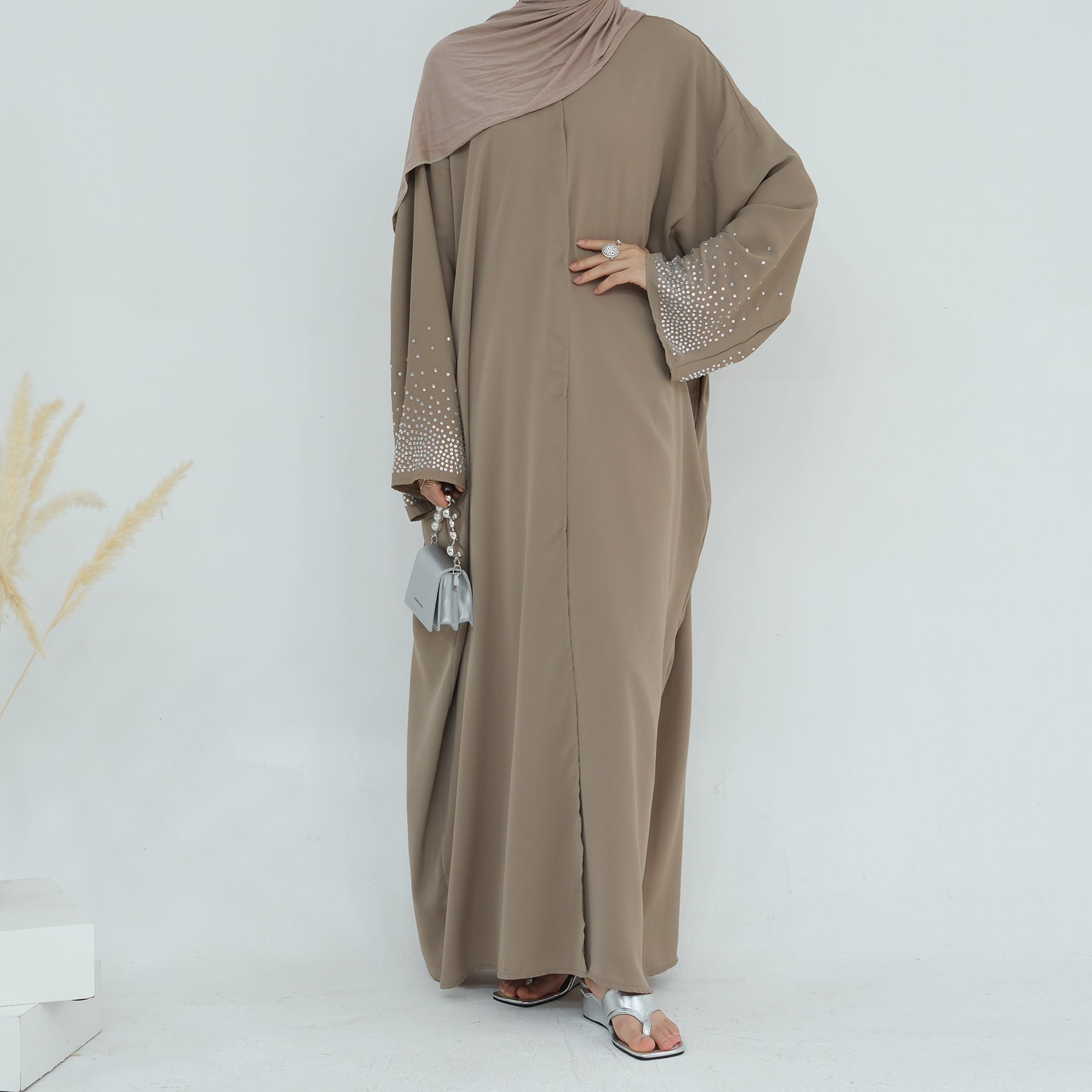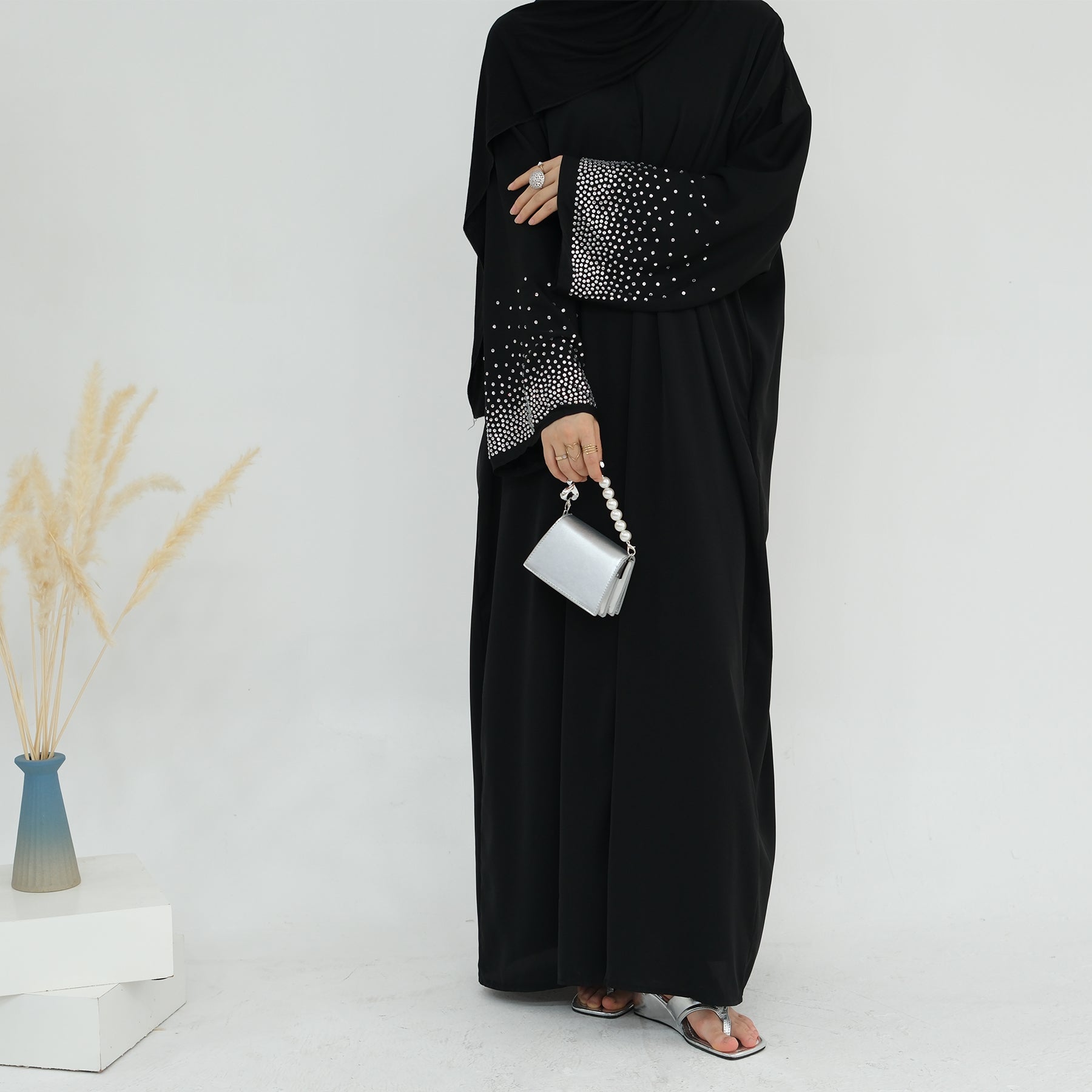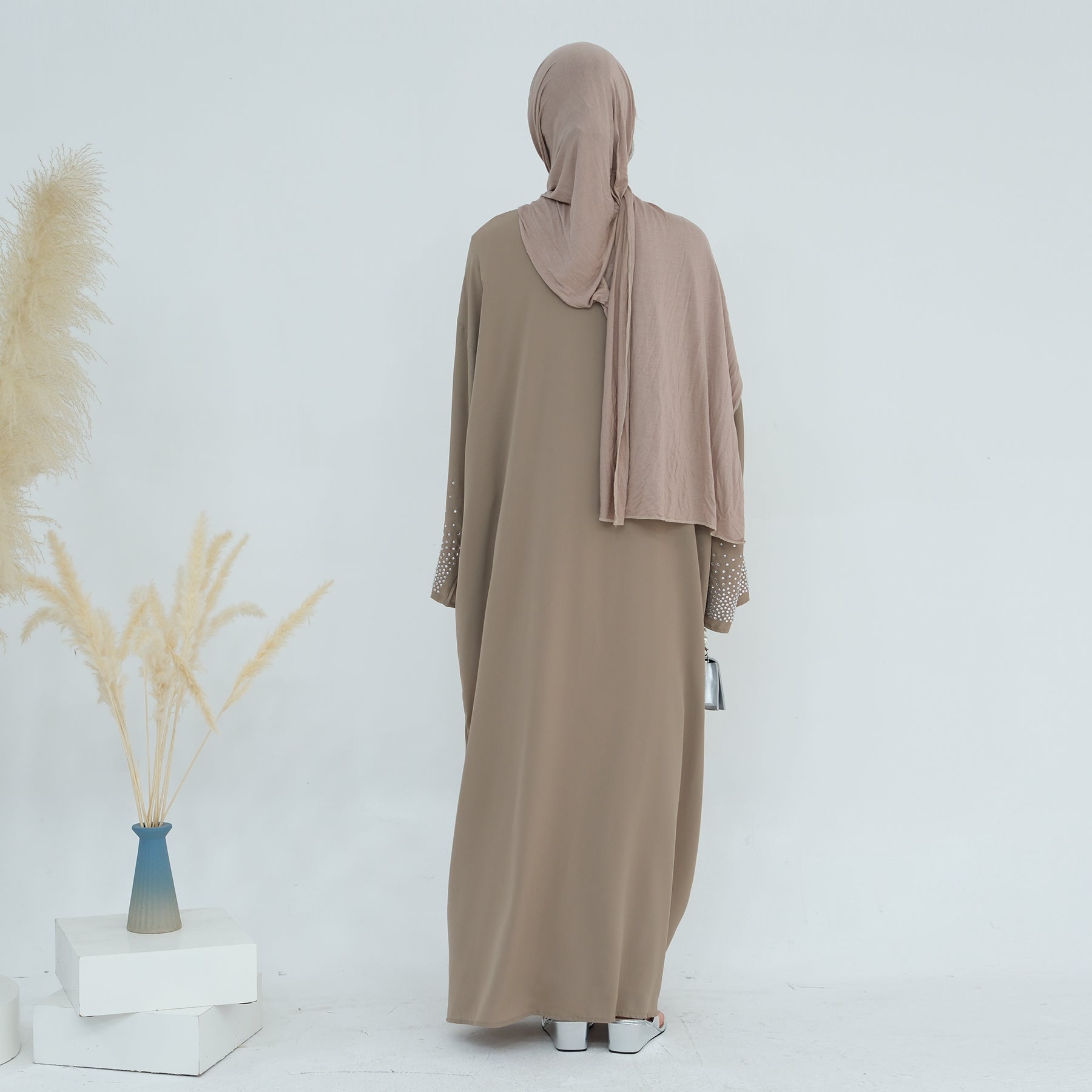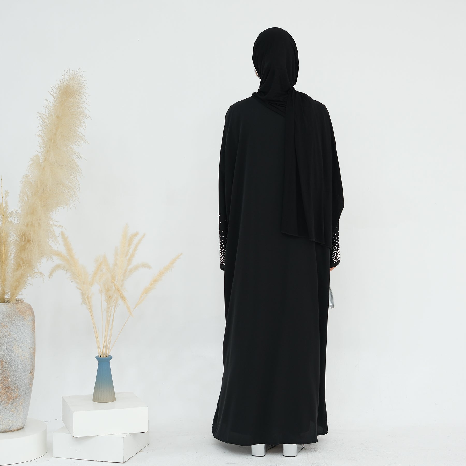 Front-Open Abaya with Rhinestone Embroidery and Functional Side Pockets