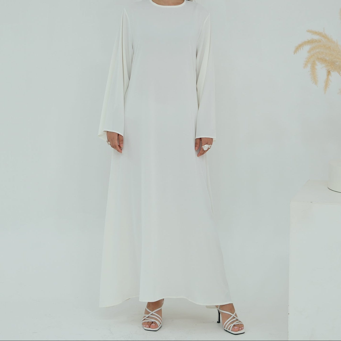 Full sleeves Nida Inner Abaya Dress (فستان عباءة داخلي نيدا بأكمام طويلة) is a lightweight and breathable inner nida dress designed as the perfect layering piece under open abayas. With its flowy silhouette and optional belt, it offers modest coverage and effortless elegance for everyday wear.